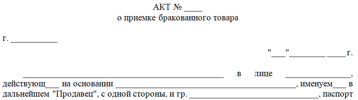 Акт приемки товара ненадлежащего качества составляется для того, чтобы зафиксировать наличие брака, повреждений и других недостатков у проданного товара. В дальнейшем такой акт может потребоваться для проведения экспертизы и ведения переговоров между продавцом и покупателем по возврату денег за товар или замене товара качественным. Скачайте образец такого акта ниже.