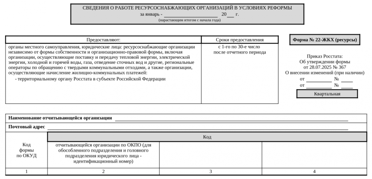 Порядок представления ф. 22-ЖКХ (ресурсы) 2026 года