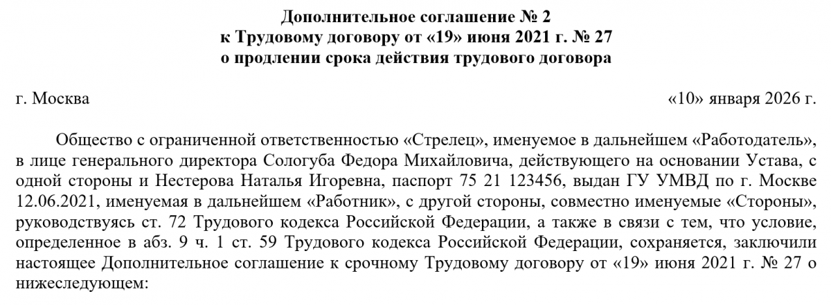 Как составить дополнительное соглашение о продлении срока трудового договора