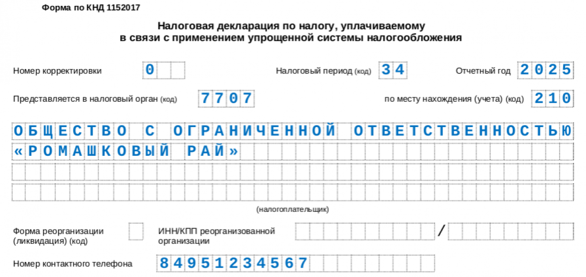 Теперь рассмотрим заполнение декларации на основе данных нашего примера. Наши простые рекомендации помогут вам заполнить декларацию УСН 6 %.