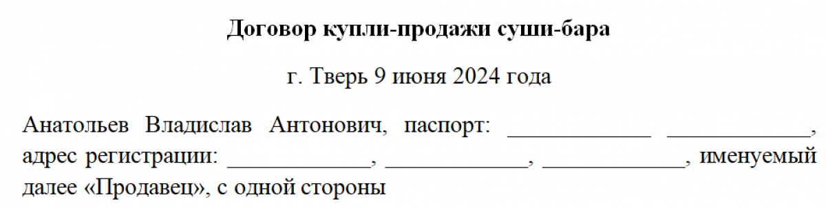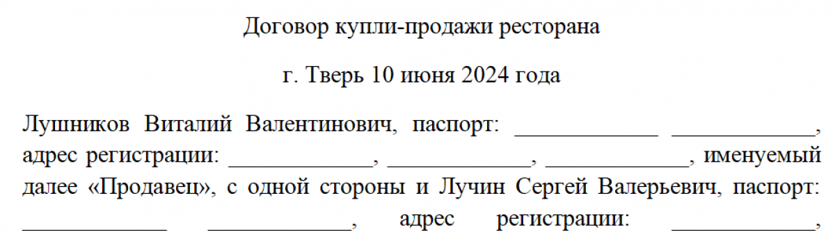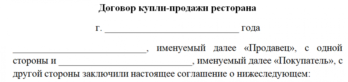 Договор купли-продажи кафе