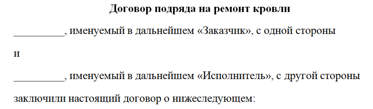 Договор на ремонт кровли