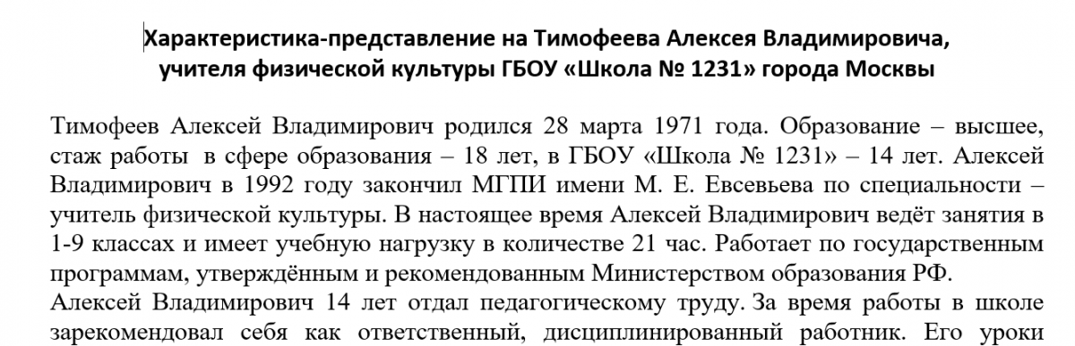 Содержание характеристики учителя физической культуры