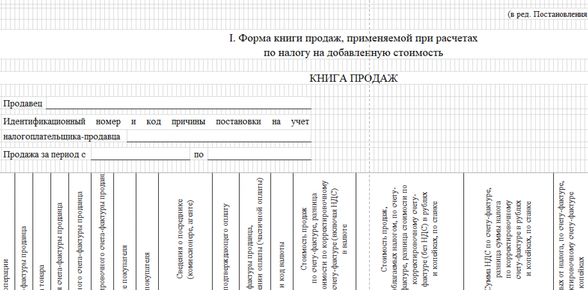 Скачать бланк книги продаж
