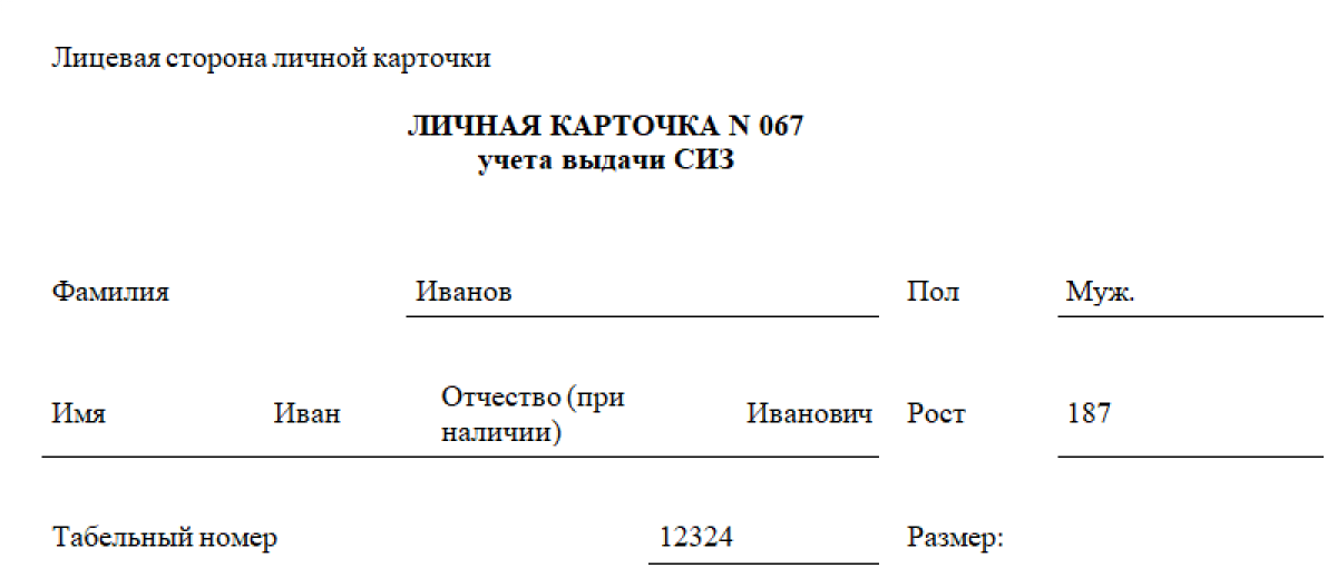 Личная карточка учета выдачи СИЗ по приказу Минтруда от 29.10