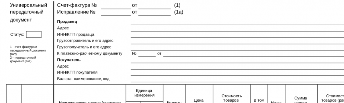 - 1 – когда УПД выполняет функции не только передаточного документа, но и счета-фактуры;