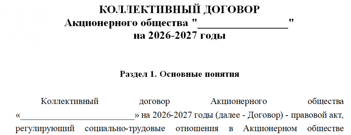 Коллективный договор должен быть составлен в письменной форме. Форма, содержание договора часто вызывают затруднение. В качестве образца можно взять типовой коллективный договор, утвержденный Минтруда России 6 ноября 2003 г. Кроме того, при составлении некоторых пунктов коллективного договора можно использовать Рекомендации, одобренные Решением Московской трехсторонней комиссии № 77-869 от 18 апреля 2016 г. Образец коллективного договора на 2026 год мы привели выше.