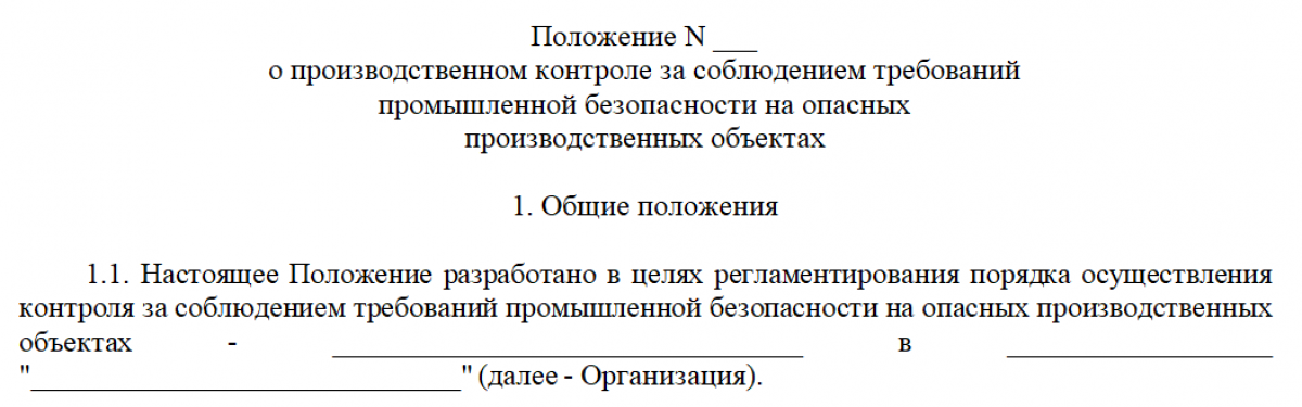 Положение по производственному контролю на опо образец и структура