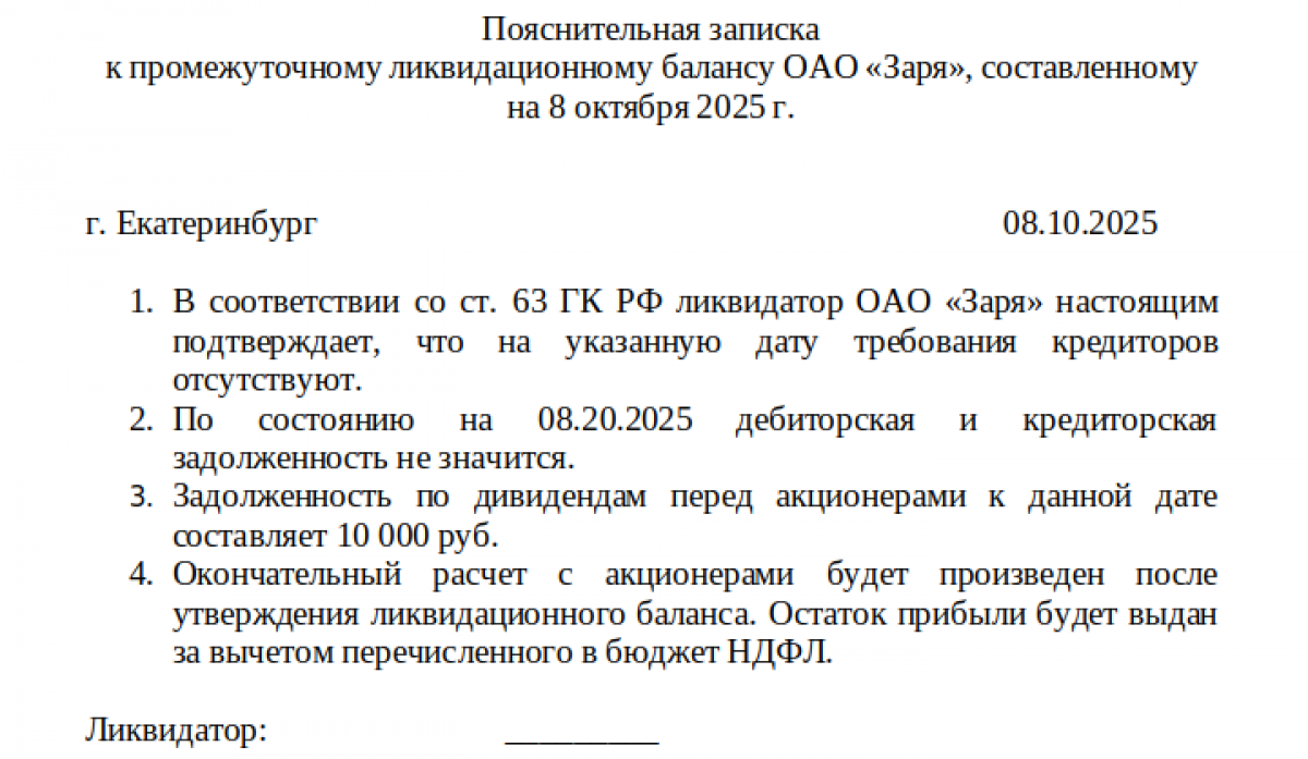 Нюансы составления пояснительной записки к промежуточному ликвидационному балансу