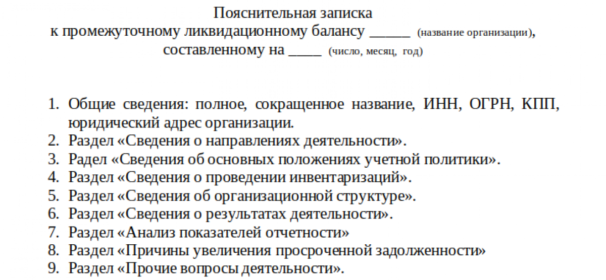 Назначение пояснительной записки к промежуточному ликвидационному балансу
