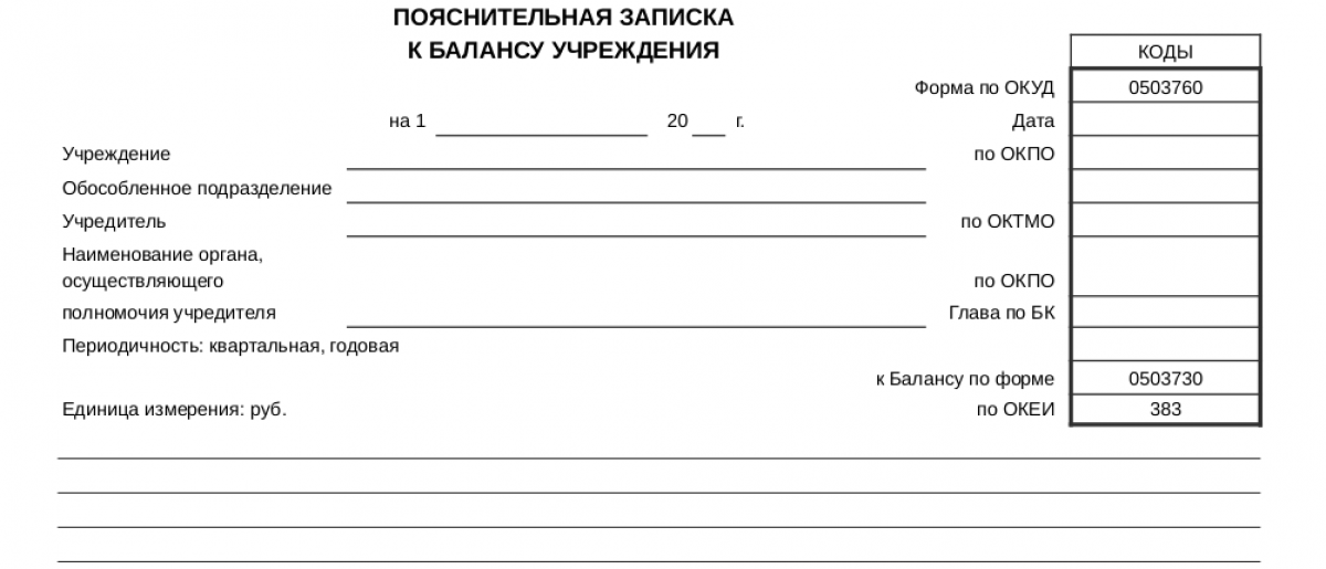 Шаблон пояснительной записки с возможными разделами, сформированный на основе ф. ОКУД 0503760: