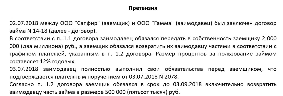 Претензия по договору займа
