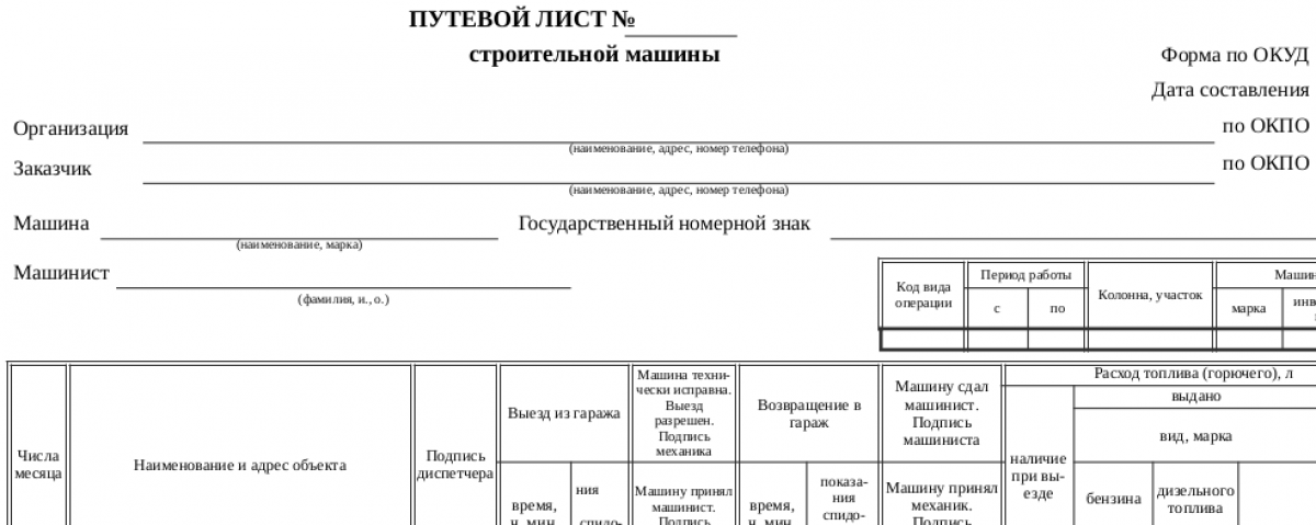 Срок действия каждого путевого листа зависит от поставленной задачи или дальности поездки строительной машины. Обычно первичный документ выписывается на сутки или рабочую смену, но в некоторых случаях его оформляют на декаду (10 дней).