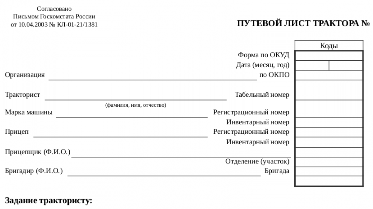 Несмотря на необязательность применения в работе унифицированных форм, большинство сельскохозяйственных предприятий используют разработанные государством бланки путевых листов: