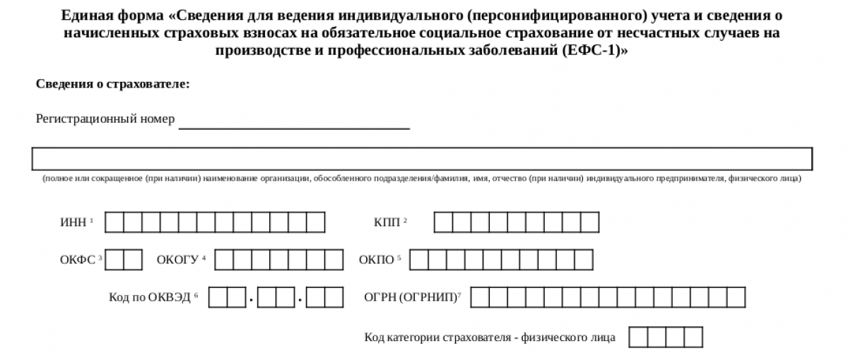 Общий для всех титул ЕФС-1 страхователи заполняют стандартно, указывая: