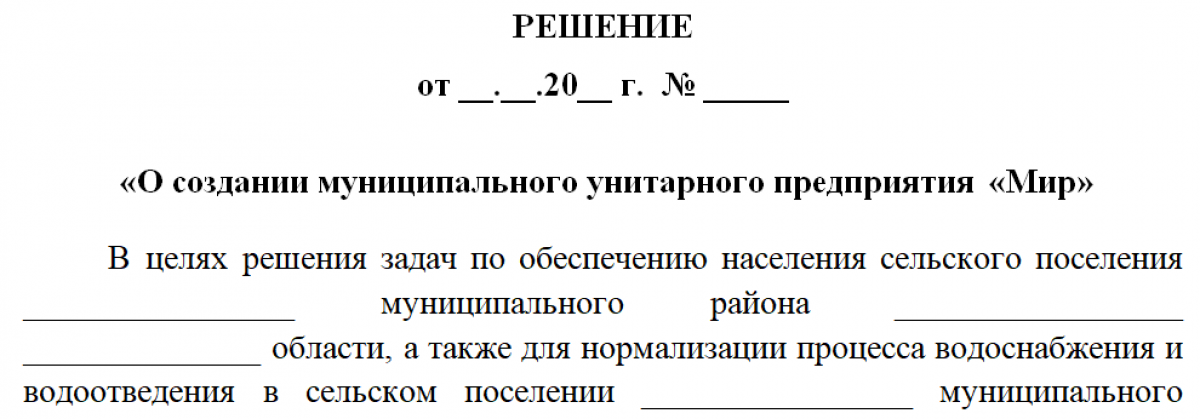Решение о создании унитарного предприятия