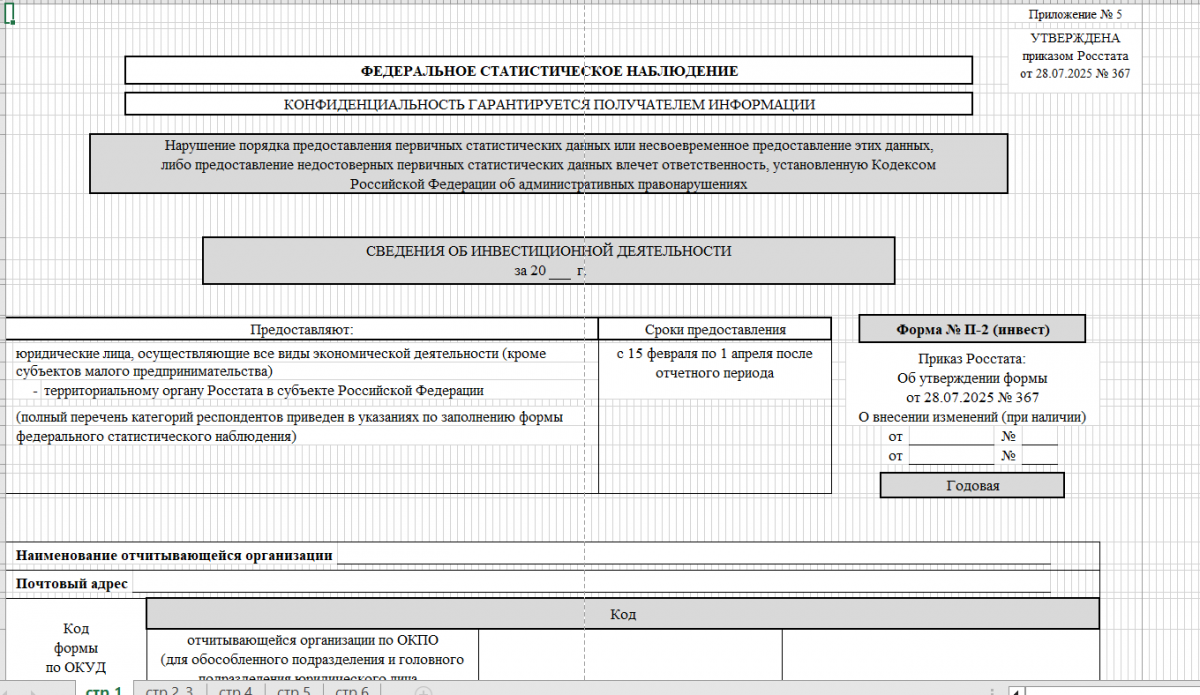 Бланк формы № П-2 (инвест) "Сведения об инвестиционной деятельности" утвержден Приказом Росстата от 28.07.2025 N 367.