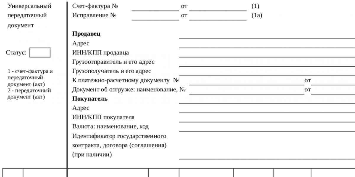 3. Если в УПД указан статус 2, то поля, предназначенные для счета-фактуры, заполнять не нужно. В этом случае также можно игнорировать другие строки: