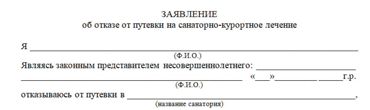 Заявление на отказ от путевки в санаторий