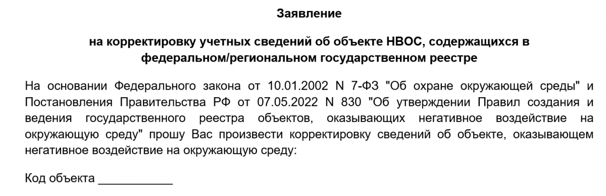 Как составить заявление на корректировку сведений об объекте НВОС?