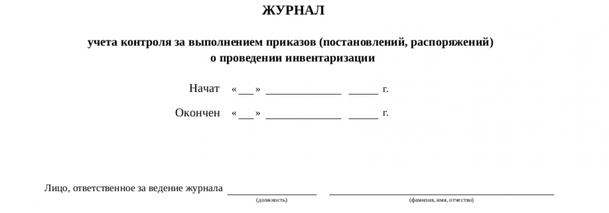 - Ф. И. О., должность лица, ответственного за его ведение.