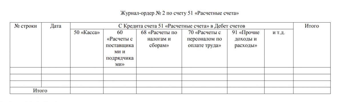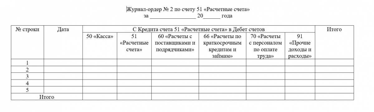 Журнал-ордер 2 по кредиту счета 51: бланк и образец