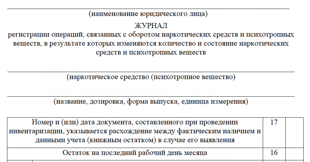 Журнал учета наркосодержащих препаратов и психотропных веществ