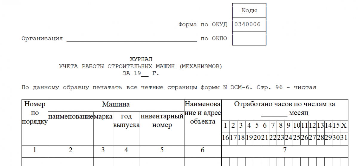 Журнал учета работы строительных машин и механизмов ЭСМ-6